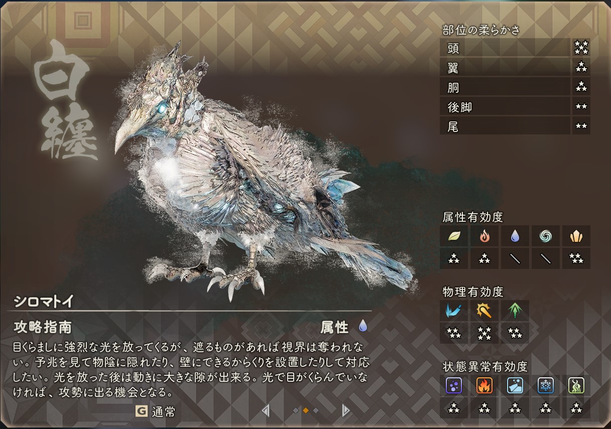 獣の成長と何を餌とするかには、強い結びつきがあると言う学者もいる。シロマトイもクロマトイもひなは同じ姿だが、獣の死肉を漁って育ったものはクロマトイに、海沿いで魚介を多く食べたものはシロマトイになるという。その輝きは、煌めく海のかけらなのだろうか。