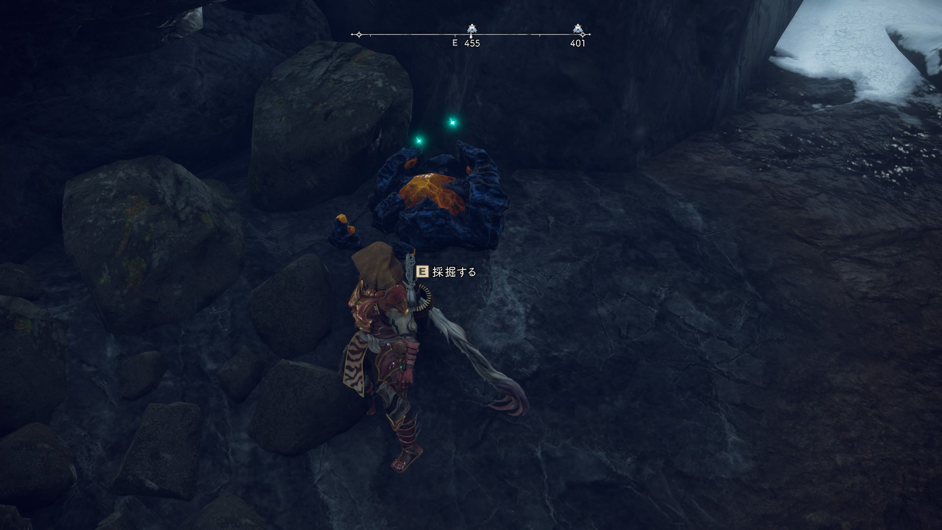 マップ西側の地下道のエリアで発見することが出来ます。また冬塞ぎの孤城に下記の画像のような見た目の、鉱物があった場合は高確率で光石を入手可能なため、積極的に拾いましょう。
