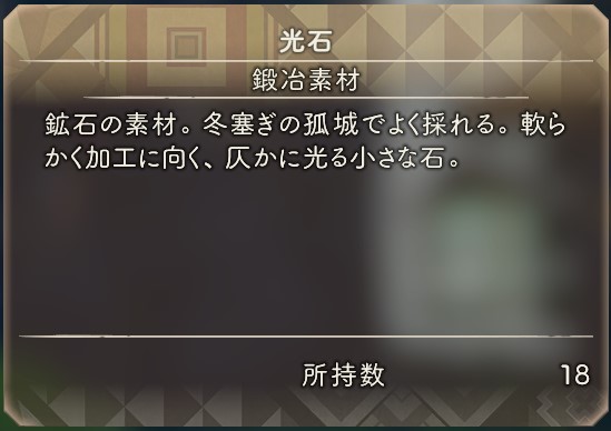 光石は武器の強化素材であり、特に物理攻撃が高い部類の武器を進化させる際のルート選択で使うことが出来ます。