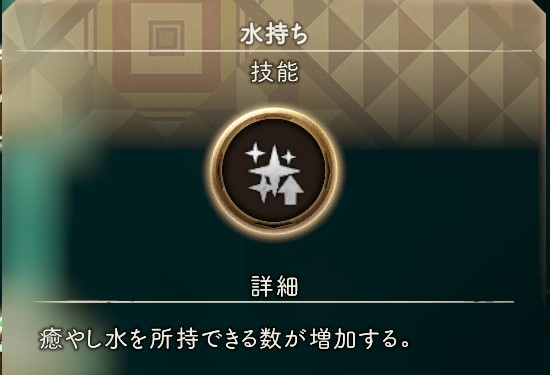 癒し水はワイルドハーツにおける回復アイテムの役割を果たしています。様々な入手方法が用意されており、獣伐中に枯渇することを防ぐ工夫が行われています。