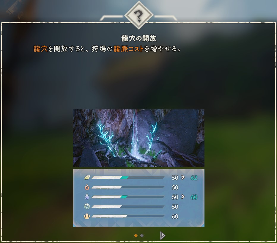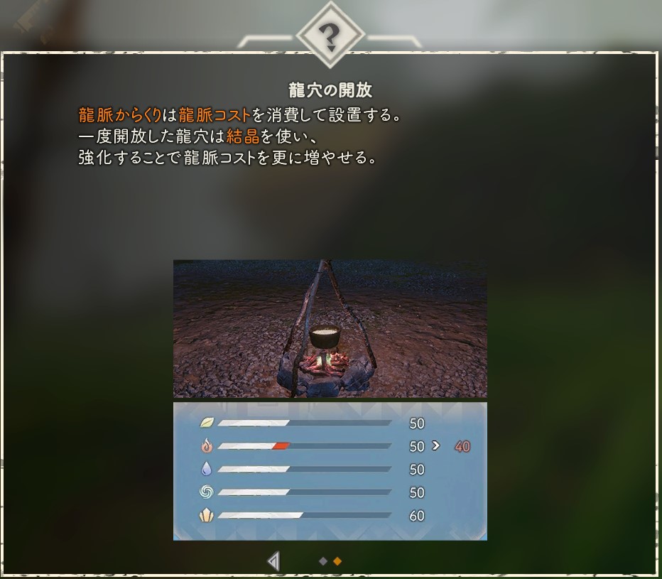 龍穴は龍脈からくりの作成上限を上げてくれます。フィールド上に点在するため、見つけたら開放しておきましょう。一度解放した龍穴はマップ画面から龍穴の強化を行うことが可能です。